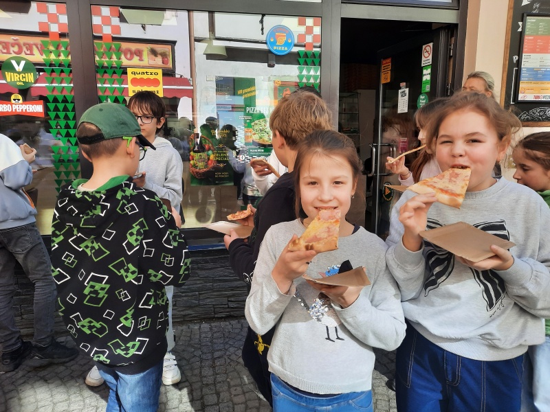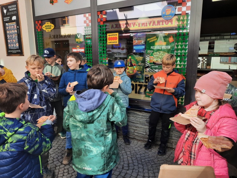 Před vánočními svátky se tři třídy z 1. stupně zapojily do výtvarné soutěže s názvem Cesta pizzy. Žáci k tématu přistoupili velmi kreativně a každý jej pojal po svém. Většina děl vznikla kresbou pastelkami, ale objevila se zde i technika malby temperovými barvami.