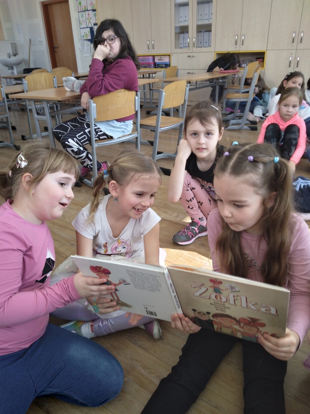 Každé oddělení naší družiny si připravilo na tento den svůj program. Nejmenší děti se ponořily do problematiky čtenářství, povídaly o tom, co je to, proč čteme, kdo jaké knihy má, a zda jim čtou i rodiče. Poté jsme si povídali o Miloši Macourkovi a jeho tvorbě. Představili jsme si knihu Žofka a začali číst. Knihu bychom rádi přečetli do konce měsíce března, kdy nás čeká Andersenovo odpoledne. Starší děti v odděleních si též něco pověděly o vzniku měsíce března jako měsíce čtenářů a měsíce knihy. Povídali jsme si o knihách, které máme rádi, co nejraději čteme a co bychom doporučili ostatním.