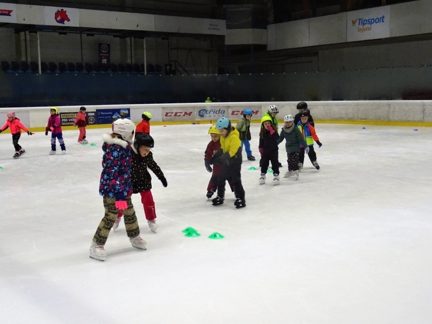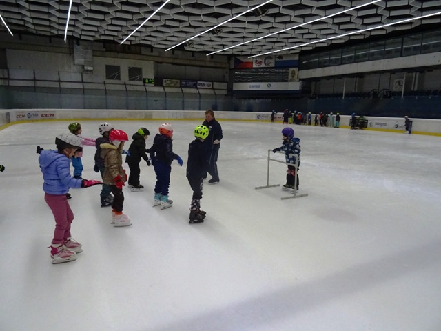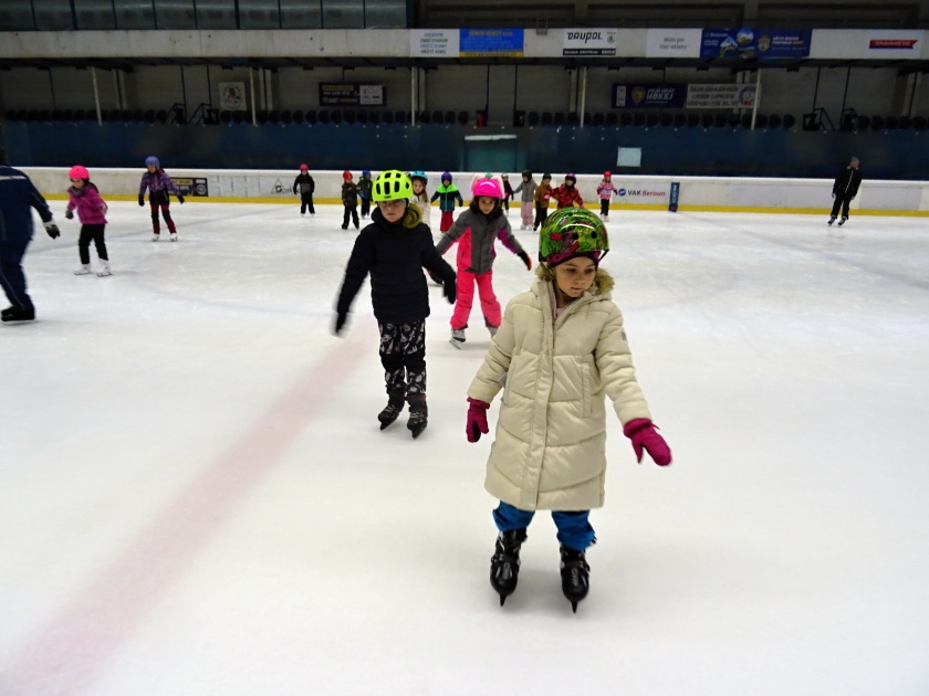 První zahajovací hodina byla pro nás zvláštní. Sešly se děti, které již základy bruslení zvládají, neboť na bruslení chodí s družinou již několik let, ale i děti, které stály na bruslích poprvé. První kroky na ledu pro tyto děti byl zážitek. Po krátkém rozcvičení se rozdělujeme na tři skupiny, které pracují pod vedením svých instruktorů. Dvě skupiny bruslařů navazují na své zkušenosti z loňského roku a stále se zdokonalují ve svém bruslařském umění. Děti, které začínají jdou pozvolna k prvním krokům. V každé další hodině můžeme vidět, jak se kdo zlepšuje. A právě dnes máme polovinu bruslařského kurzu za sebou. U nejmenších dětí můžeme vidět jejich zlepšení za pět hodin. Všechny děti se na bruslích pohybují, i když mezi nimi je ještě i dost pádů. Důležité je, že všichni na bruslích stojí a pohybují se. U zkušenějších dětí je to úplně něco jiného.