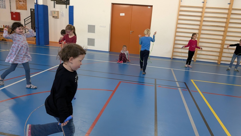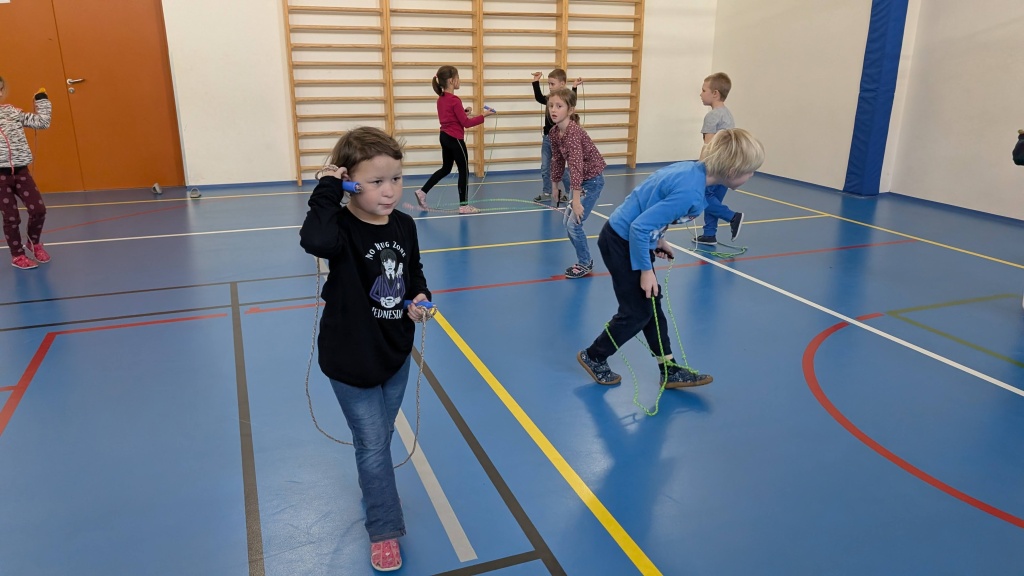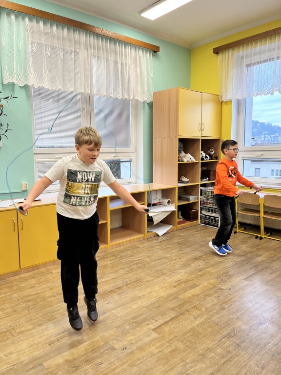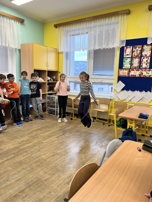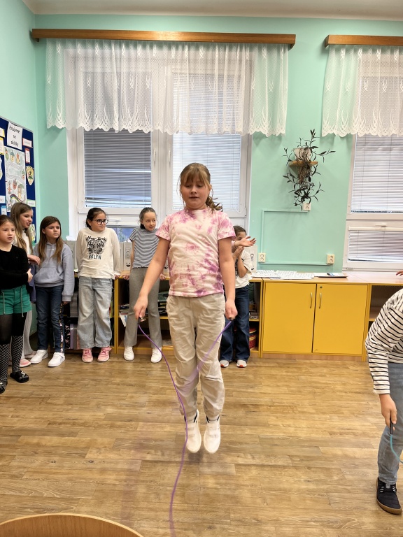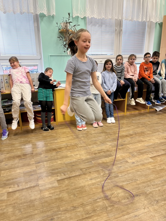 Všechny děti z prvních až čtvrtých ročníků se pilně snažily – pohyb je nám vlastní a dokážeme opravdu hodně. Každý si zkusil podle svých schopností a možností cokoliv se švihadlem. Švihadla krátká, delší, jen tak jako překážky, prostě – užili jsme si to. Podívejte se do galerie. Urputnost nám nechybí!