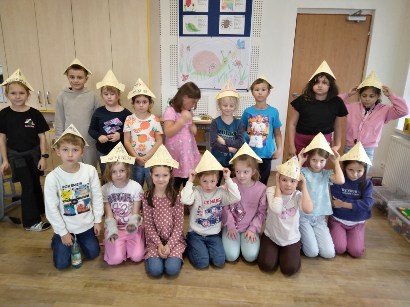 I 1. oddělení se do oslavy Večerníčka připojilo. Nejprve jsme si složili čepici, zazpívali písničku Večerníček. Potom jsme hádali hádanky a za odměnu jsme si vybrali Večerníček, jaký chceme vidět.