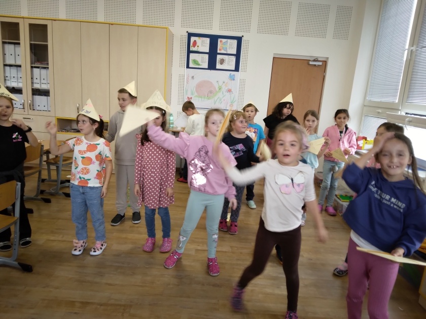Ve 4. oddělení proběhla kvízová soutěž ve skupinách. Děti hledaly lístečky své barvy rozházené v daném prostoru a pak sestavovaly dvojice pohádkových postav z večerníčků. Nakonec jsme soutěžili ve skládání puzzlí z pohádek večerníčků. Nejlépe si vedla skupina Kryštof Butovič, Péťa Staněk, Fanda Svoboda a Josefína Ilková, druhá byla skupina Klárka Nováková, Lili Kratochvílová a Míša Rožánek, a třetí byli Vasyl Pop, Denis Slabospickij, Hugo Holoubek a Oleksij Schumylovi. Na závěr jsme si zazpívali píseň Večerníček.