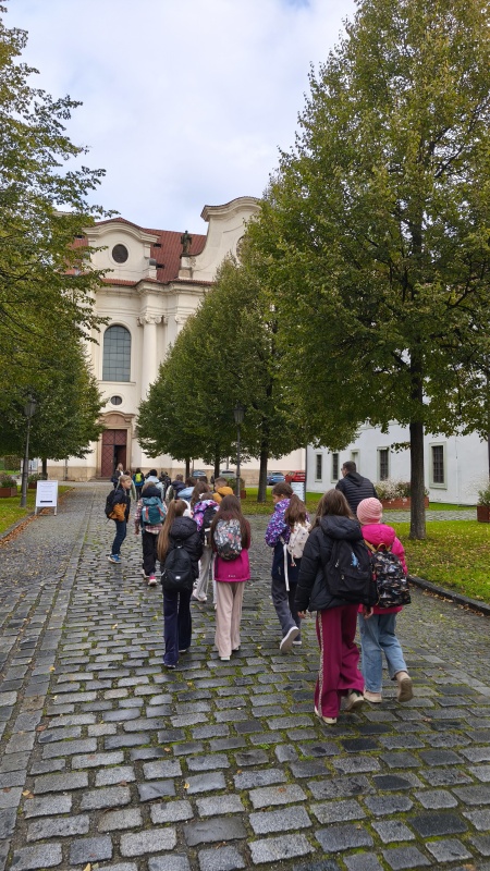 Ve dnech projektového vyučování zaměřeného na historické povědomí se naši čtvrťáci, páťáci, šesťáci i sedmáci vydali zdarma, neboť škola uhradila jak vstupné, tak dopravu, na exkurzi do jednoho z nejvýznamnějších duchovních a kulturních center v Praze – Břevnovského kláštera. A vydařilo se nám doslova po všech stránkách! Měli jsme štěstí na počasí, které nás odměnilo příjemným podzimním dnem, ale především na pana průvodce, který se na jednotlivé skupiny školáků výborně připravil. Pan průvodce věděl, co který ročník právě probírá ve vlastivědě či dějepisu, a tomu také přizpůsobil celý výklad. Mladší žáci se dozvěděli o základech klášterního života, významu svatého Vojtěcha a břevnovské tradici, starší pak více pronikli do kontextu středověkých dějin, barokní architektury či proměn české společnosti. Bez ohledu na věk ale průvodce neopomněl důležitý přesah – morální ponaučení a zásady slušnosti. Respekt k historii i k sobě navzájem byly přirozenou součástí celé exkurze. Právě to dodalo dni nejen vzdělávací, ale i výchovný rozměr, který jsme velmi ocenili.