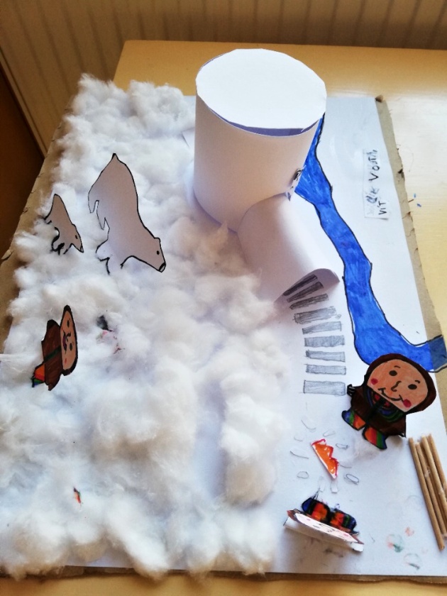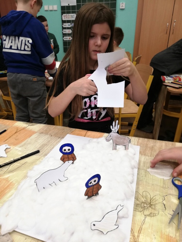 Děti 4. oddělení naší školní družiny se vydaly na putování světem a jejich první zastávkou bylo Grónsko. Na úvod jsme si pustili zimní písničku s eskymáckou melodií, GRONSKÁ PÍSNIČKA OD Jarka Nohavici. Ta nás naladila do atmosféry zimní krajiny. A tak jsme se dnes podívali do velmi chladné části světa – do Grónska. Povídali jsme si o tom, kde Grónsko leží, jaké je tam počasí, jak tam lidé žijí a jaká zvířata tam můžeme potkat. Po úvodním slovu jsme si vytvořili vlastní zimní vesničku. Tu jsme vytvářeli ve skupinách – iglú, postavy, zvířata sníh. Po ztvárnění grónské vesničky jsme naše práce vyhodnotili a pokračovali v další části dnešního odpoledne. Jednotlivci si zasoutěžili ve vědomostním kvízu, abychom se přesvědčili, co všechno jsme si z dnešního dne zapamatovali.
