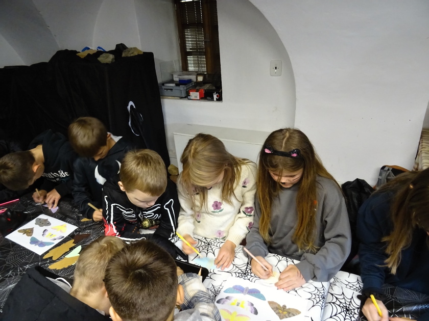 Halloween pro děti se uskutečnil 4. 11. 2025 v Muzeu Českého krasu Beroun. Proto i děti naší školní družiny se svými vychovatelkami na akci vyrazily. Čekala na nás strašidelná trasa plná úkolů. Jsme po obědě po odděleních odcházíme. Co asi letos bude pro nás připraveno? Jestlipak to všichni zvládneme? Náš cíl – muzeum a my se vydáváme postupně na trasu. Jakými stanovišti jsme prošli? Na prvním stanovišti jsme porovnávali lucerny a naším úkolem bylo je dodat do domu. Druhé stanoviště bylo pro některé zvláštní. Naším úkolem bylo sbírat v prostoru pavouky, můry a netopýry. Na třetím stanovišti jsme sestavovali obličej příšerky. To se nám moc líbilo. Vzniklo mnoho krásných i strašidelných příšerek. Na čtvrtém stanovišti na nás čekala překážková dráha. Páté stanoviště bylo ve znamení umělecké dílny, kde jsme vyráběli můru. Tu jsme si pak odnášeli i domů.