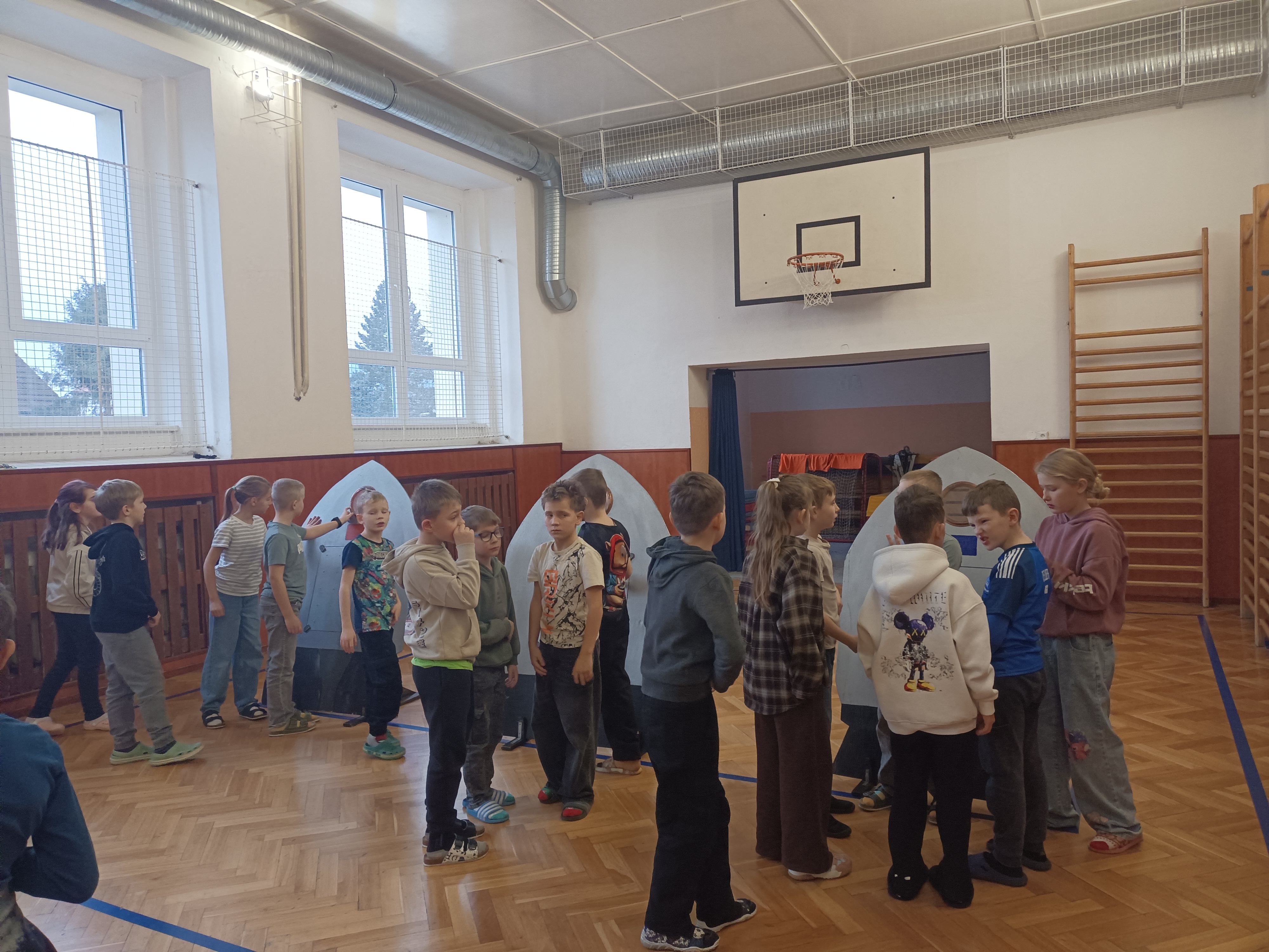 Houstone, máme problém je didaktický program zaměřený na matematickou gramotnost. Všechny děti se staly účastníky vesmírné mise. Jejich cílem bylo najít planetu, na které by mohlo později žít celé lidstvo. Už jenom téma a nesmírně empatický, pravdivý a výrazný projev našeho průvodce okamžitě děti zaujal. Během dvou hodin jsme počítali, využili znalosti z geometrie, kombinatoriky, orientace v prostoru. Ověřili jsme si, zda umíme naslouchat, máme dostatek trpělivosti a ohleduplnosti (na malém prostoru v kosmické raketě je to nutnost). Děti řešily i praktické problémy – díra v plášti lodě (rychle sestavte plášť krychle), hod na cíl – kdo vejde do kosmického tělesa. Velká zábava, učení nejen matematiky, ale i sociálních dovedností. Doufáme, že si zase něco podobného někdy užijeme.