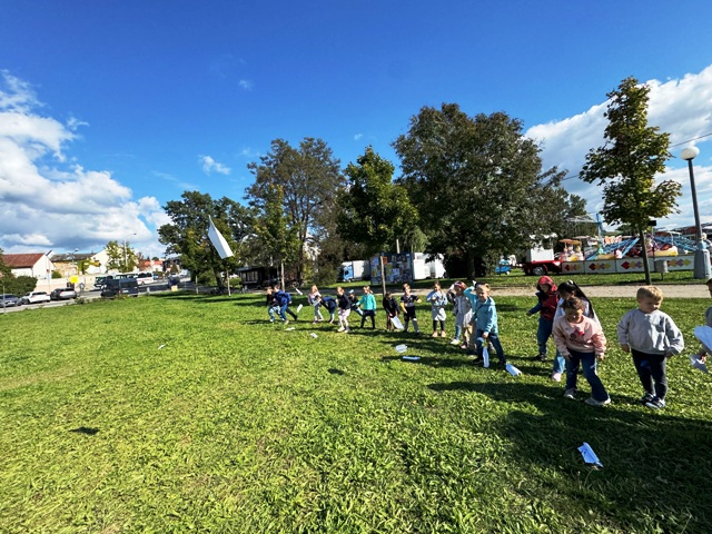 Děti školní družiny již tradičně si připomínají měsíc září, kdy se loučíme s létem a nastávají nám podzimní měsíce. Loučíme se nejen s létem, ale se stěhovavými ptáky, především s vlaštovkami, které můžeme v hojném počtu pozorovat v okolí naší školy. A tak se dnes po výuce a po obědě schází jednotlivá oddělení, aby se důstojně s létem a s vlaštovkami rozloučila. Nejprve jdeme do svých družin, zde jsme si něco pověděli o vlaštovkách a poté jsme si každý vyrobil z papíru svoji vlaštovku. Děti z 1. a 3. oddělení odchází na ovál pod most a děti z 2. a 4. oddělení, které v průběhu odpoledne mají ještě nějaké školní povinnosti, zůstávají na školním hřišti a dvoře. Zde proběhla tzv. vlaštovkiáda.