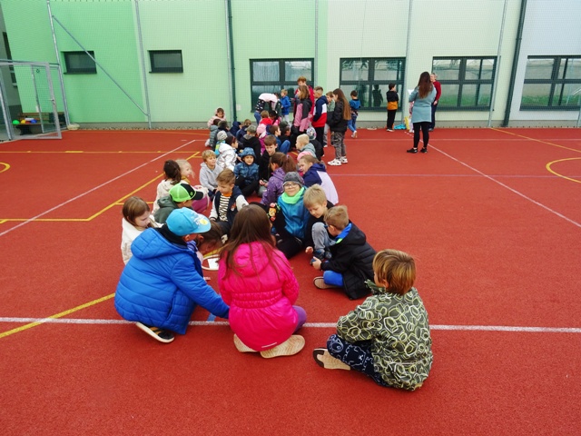 Ukončení našeho projektu s názvem Festival ptactva proběhl 3. 10. 2025 ve školní družině a na školním hřišti za účasti všech oddělení. Závěrečná akce proběhla formou soutěže. Nejprve se všichni scházíme ve školní družině, kde jsme si společně zopakovali, co jsme všechno viděli a co jsme si zapamatovali. Rozdělili jsme si ptáky na stále a tažné, přiřadili jsme k jednotlivým skupinám ptáky, které známe. Poté jsme dle obrázků poznávali ptáky a říkali si i zajímavosti z jejich života. Po ukončení první opakovací části odcházíme z družiny na hřiště a školní dvůr. Zde se rozdělujeme na čtyři skupiny tak, jak jsme zvyklí. Utvořili jsme soutěžní družstva a můžeme začít. Naše skupiny jsou ptačí hnízda, kde si musíme obstarat potravu. O několik metrů dál jsou proti skupinám rozházené kaštany, které představují potravu ptáků. Formou štafety se snaží jednotlivci z hnízda vysbírat co nejvíce kaštanů. Po vysbírání spočítáme kaštany a napíšeme body jednotlivým skupinám. Ve druhé soutěži skupiny obdrží archy s ptáky, pod nimiž je jejich krátká charakteristika. Opět proti skupinám jsou dle barvy na druhé straně rozmístěny lístečky s různými zajímavostmi. Formou štafety přinášíme lístečky a přiřazujeme k jednotlivým obrázkům. Po určitém časovém úseku končíme a začneme hodnotit a přidělovat body. Ze soutěže bylo vidět, že si toho děti zapamatovaly mnoho zajímavostí a správně zařadily. Pak jsme spočítali body a vyhodnotili jednotlivé skupiny. A jak to dopadlo?
