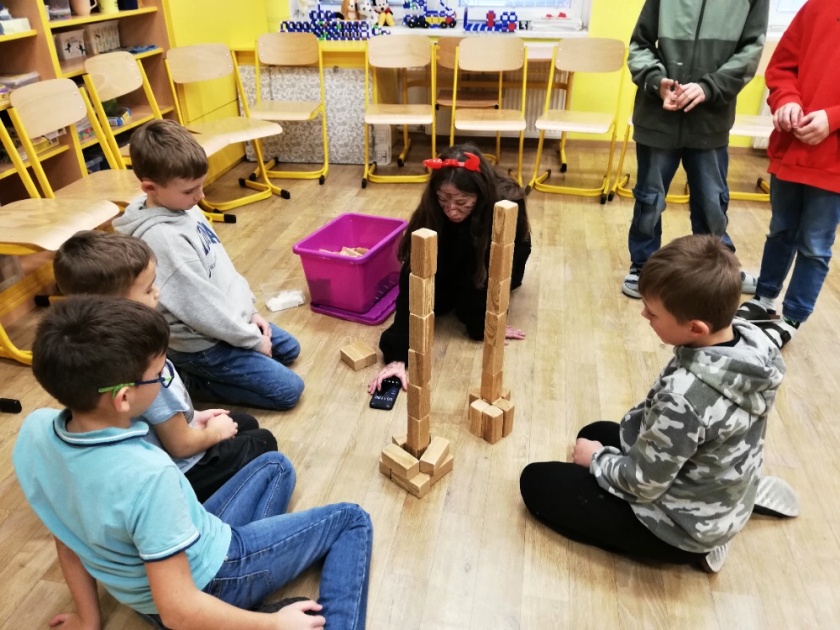 Stanoviště ČERT K – bylo trochu o zručnosti. Šlo o stavění věže z kostek.