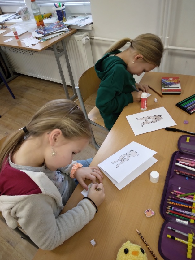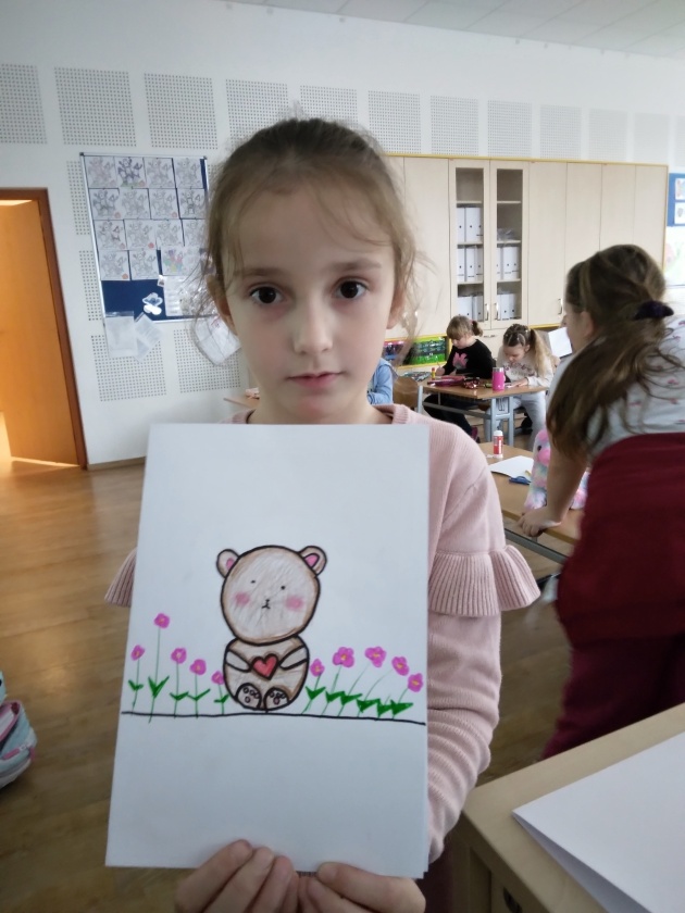 Vzhledem k nevhodnému počasí včera 13. 1. 2026 děti za Kubou nepřišly, přesto si ve školní družině udělaly „Medvědí odpoledne“. Někteří si přečetli pohádku: O medvídkovi, který se probudil uprostřed zimy. Potom jsme měli rozhovor o pohádce – co dělají medvědi v zimě, která zvířata ještě spí atd. tímto jsme přešli k besedě o medvědech v Berouně. Připomněli jsme si jejich život, zavzpomínali na ty, co již nežijí. Toto povídání jsme spojili i s tím, kde v Berouně můžeme najít medvěda – erb, název hokejistů, vlajka a další. Medvěd je symbol našeho města Beroun. Kromě toho proběhla i kvízová soutěž na téma „Co víme o medvědech.“ Poté jsme vytvořili skládanku na ruby, kdy dvojice na čtvrtku nakreslila medvěda, obrázek rozstříhala na 10 – 12 kousků a vytvořila puzzle. Ve dvojicích jsme si je vyměnili a skládali puzzle. Na závěr jsme vytvořili přání pro Kubu, využili jsme obrázky s medvědy. Každý si řekl, co Kubovi přeje. Nejhezčí obrázky namaloval David Tůma a Tereza Hojačová – medvěd a narozeninový dort. Další dva obrázky namalovala Nina Hanžlová a Sára Průšová. Takto proběhla jedna část oslavy 26. narozenin Kuby.