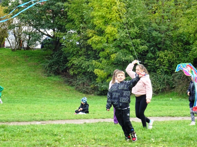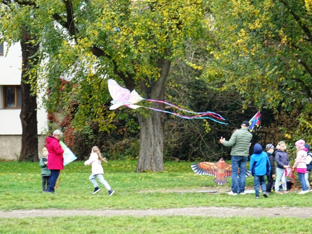 Každým rokem kolem poloviny října prožívají děti naší školní družiny nejoblíbenější akci. Tato podzimní akce se letos odehrála 17. října na přilehlém břehu nedaleko Berounky. Po ukončení výuky jdeme na obědvat a pak hurááá! Jdeme na družinovou drakiádu. Oblékáme se, připravujeme si draky a odcházíme. Ale omyl, venku začalo pršet. Uvidíme, jak déšť dlouho potrvá. Za krátkou chvíli se vyjasnilo a my můžeme jít. Co chceme, vždyť je podzim, a proto i podzimní počasí. Chvíli tak, za chvíli jinak. Odcházíme k Berounce, sestavujeme draky a jdeme létat. Mezi sebou soutěžíme o nejvyšší let, nejdelší let a na dobu pobytu draka ve vzduchu. Po krátkém zahájení se mezi dětmi objevili i rodiče. I oni se ponořili do dětských let a létali s námi.