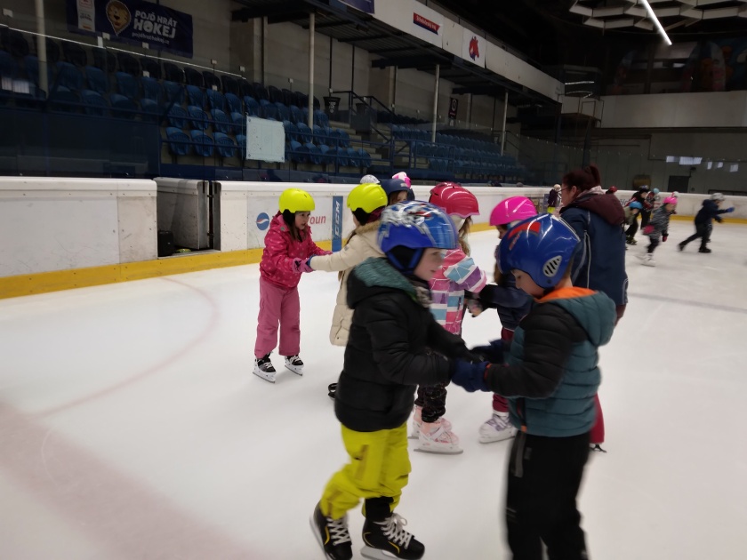Školu bruslení využila i v letošním školním roce 2025 – 26 naše školní družina, které se v průběhu roku zúčastňuje téměř 60 děti. Pro děti je připraveno 10 kurzů bruslení, které probíhají u nás od října do března. O děti se na zimním stadionu starají zkušení bruslařští instruktoři. Jak děti, tak i instruktoři vědí, jak těžké je začít bruslit, když někteří nemají možnost se samostatně zúčastňovat bruslení na zimním stadionu. Každým rokem se na počátku stane, že některé děti na bruslích ještě nestály. A zde je právě pravá příležitost za odborného dohledu začít. Ty děti, co umí již alespoň troch bruslit se zdokonalují. Výcvik probíhá formou her. Na počátku jsou děti rozděleny do třech skupin a k nim jsou přiřazeni bruslařští instruktoři. Na závěr každé hodiny kurzu si děti zabruslí i samy.