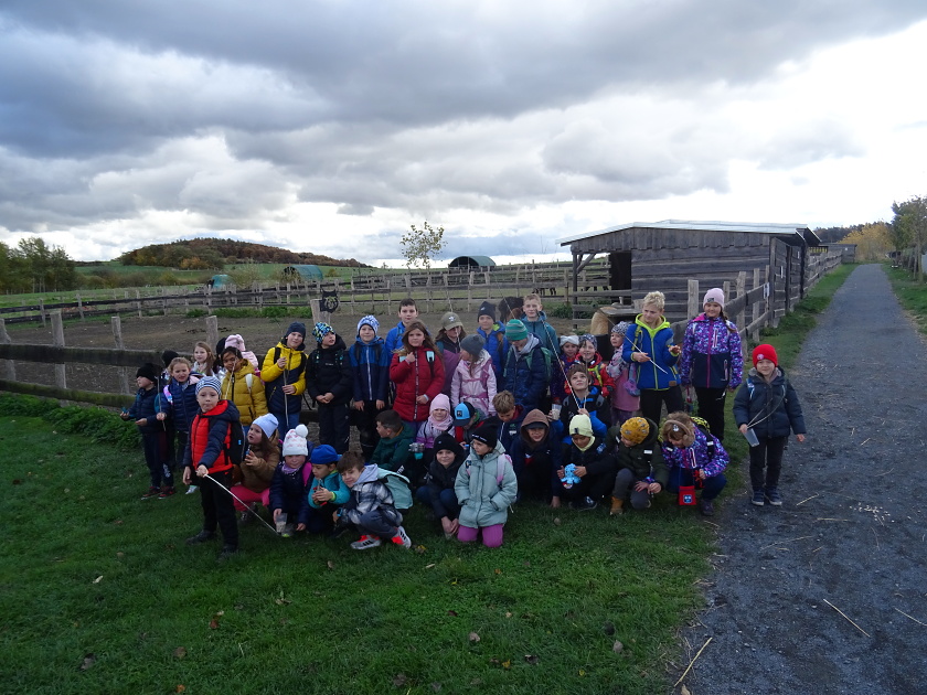 Další den podzimních prázdnin a my se opět vydáváme na výlet. Krátce po osmé hodině odjíždí děti do Chyňavy, kde se nachází rodinný zoopark. Počasí nám sice mnoho nepřeje, ale my to snad přežijeme, když je chladno a mrholí. Třeba se to vyčasí. Dojíždíme do cíle a nevěříme vlastním očím. Zoopark se nachází přímo v řadové výstavbě uprostřed vesnice. Chvíli musíme počkat, neboť jsme tu o něco dříve. V devět hodin odcházíme, kde na nás již čeká paní majitelka. Srdečně nás vítá a přeje nám krásné dopoledne mezi zvířátky. Připomíná nám bezpečný pobyt, a především pozor při krmení. Není nic lepšího než zapojit do učení, co nejvíce vjemů. Tady můžeme zapojit nejen zrak, ale sluch, čich a hmat. Ideální možnost je z blízka se podívat na exotická zvířata, ale i na ta hospodářská. Dnešní vstup máme i s krmením, kdy jsme obdrželi kelímek s krmením a můžeme krmit vybraná zvířata – králík, morče, lama, velbloud, ovce, koza, ale i řadu dalších.