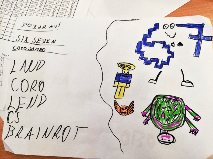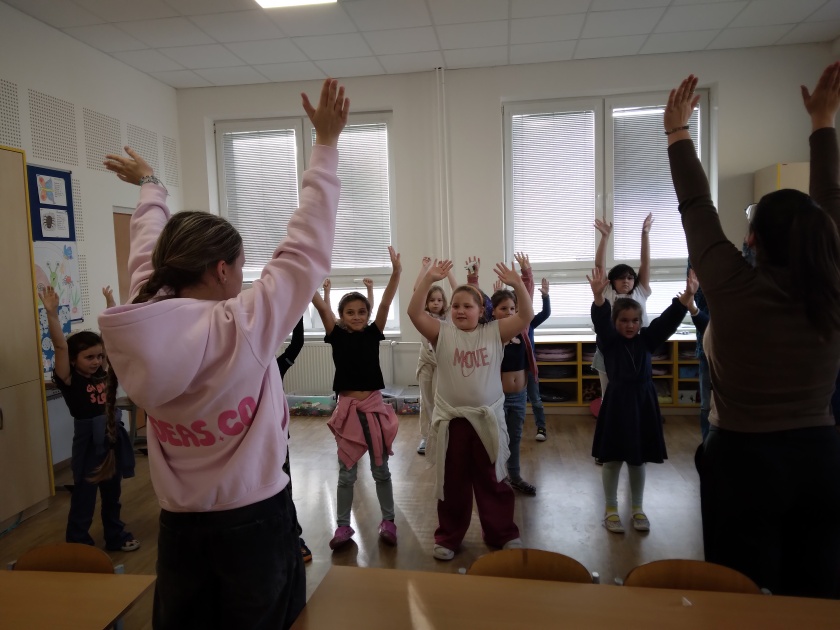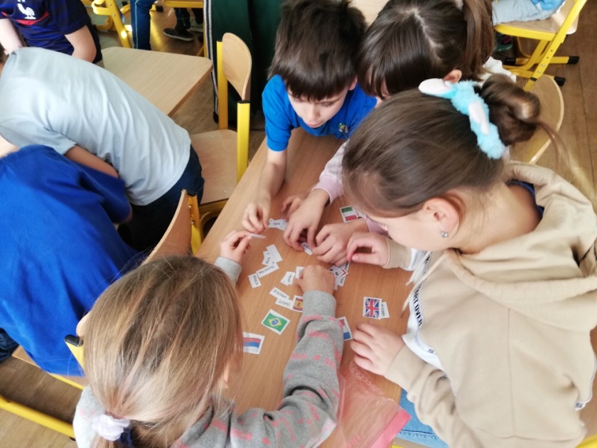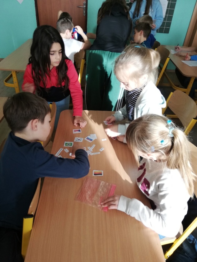 U starších dětí 2. a 4. oddělení bylo cílem děti naučit nové pozdravy z různých států, kde jsme poznávali i vlajky těchto zemí a přiřazovali k nim pozdrav. Chvíli jsme povídali o pozdravech. Po této činnosti jsme si i zasoutěžili. Naším úkolem bylo vyluštit osmisměrku. Ve dvojicích jsme potom tvořili vlajku a pozdrav vlastního „státu“. Když mají hotovo, každý se pochlubí a předvede, co dokázal včetně pozdravu. Na závěr jsme společně dali dohromady pozdravy, které se používají u nás a při jakých příležitostech.