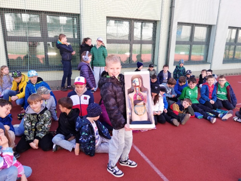 Všichni společně se scházíme v družině po obědě, abychom si dnešní odpoledne připomenuli Světový den zdraví. Nejprve si společně povídáme o zdraví, co kdo ví a co si pod pojmem zdraví představuje. V další části jsme se vyjadřovali k tomu, co kdo může pro své zdraví udělat, aby byl zdravý. Po této besedě jsme shlédli film „Tělo a člověk“. Potom jsme se všichni společně věnovali lidskému tělu a jeho vnitřním orgánům. Ty jsme si ukazovali na figuríně a naším úkolem bylo je správně pojmenovat. Po praktické ukázce jsme si zasoutěžili. Naším úkolem bylo v různých barvách, které jsme si předem určili, vymalovat dané orgány. Na pracovním listu byla i čísla orgánů a částí těla a my je měli určit. Do obrázku lidského těla jsme popisovali, jakou mají funkci a co je jejich úkolem. Potom jsme si společně vyhodnotili. Dnešní odpoledne patřilo opravdu našemu zdraví a my se budeme snažit o to, abychom zdraví opravdu byli.