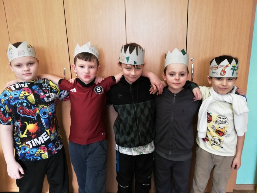 Tří králové odpoledne dnes 6. 1. prožily děti školní družiny za doprovodu svých praktikantek ze SPgŠ Beroun, které pravidelně navštěvují naší školní družinu. Nejprve si děti po skupinách poskládaly puzzle, aby vůbec zjistily, co je dnes čeká a co nemine. Po složení obrázku jsme se seznámili s příběhem Tří králů a tím i doplnili naše prvotní informace. V neposlední řadě jsme si vyrobili korunu. V závěru jsme si zazpívali a prošli školou. Tím jsme i přivítali Tři krále na naší škole.