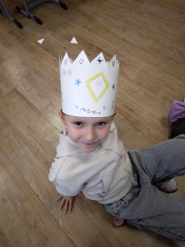 Ne jinak tomu bylo i v další skupině, kde se děti seznámily s příběhem Tří králů. Zopakovali jsme si naše informace o dnešním dnu, o Třech králích. Vysvětlili jsme si význam nápisu K + M + B (nebo C + M + B). v další části našeho odpoledne jsme si vyrobili královskou korunu a vyzdobili ji. V závěru našeho odpoledne jsme každý z nás vymyslel komiks. Do čtyř okének jsme nakreslili příběh Tří králů. Když bylo hotovo, každý se se svým uměním pochlubil.