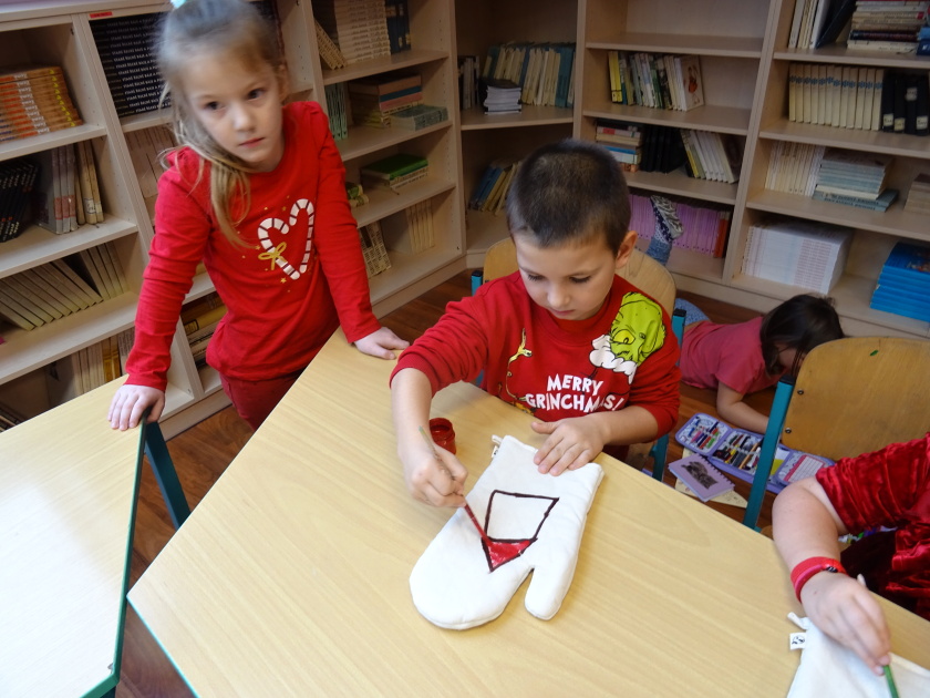 Další setkání s Eliškou Dolejš proběhlo dnes v naší školní družině, i když je ještě listopad, čas rychle utíká a my již myslíme na Vánoce. Po dlouhodobém vybírání, co vyrábět a darovat výrobek jako dárek svým blízkým. Nakonec jsme rozhodli, že děti si vyzdobí „chňapku“ pro maminky k Vánocům. Díky škole, a především vedení školy děti vyráběly zdarma. Škola byla ochotna nám zafinancovat dnešní odpoledne.
