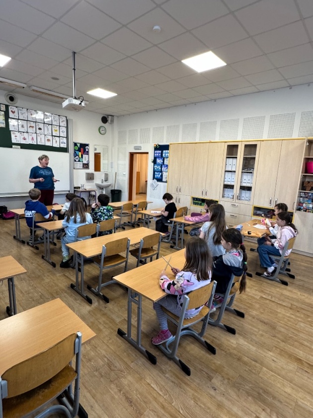 Některé děti do školní družiny opravdu zavítaly. Tvrdí, že si chtějí užít velikonoční dobrodružství. Scházíme se u školy v osm hodina a jdeme na věc. Na chvíli jsme byli v družině, kde jsme si s dětmi společně zazpívali a za doprovodu hudebních nástrojů i zahráli Jarní písničky. Snažili jsme si vyrobit píšťalku, kterou jsme i vyzkoušeli. Ještě jsme si vybarvili pár velikonočních kraslic z omalovánek. Po této činnosti proběhla svačina a my odcházíme ven. Sluníčko nám přeje, i když je ještě trochu chladno. Šli jsme k Berounce na vrbové proutky a upletli si pomlázku. Vždyť ta přeci patří k Velikonocům. Zkusili jsme si uplést i velikonoční vajíčka. Po návratu zpět jdeme ještě na chvíli do družiny, kde jsme si upletené dekorace vajíčka ozdobili. Dokončili jsme i sádrové zápichy, trochu posvačili a šli na hřiště si pohrát.