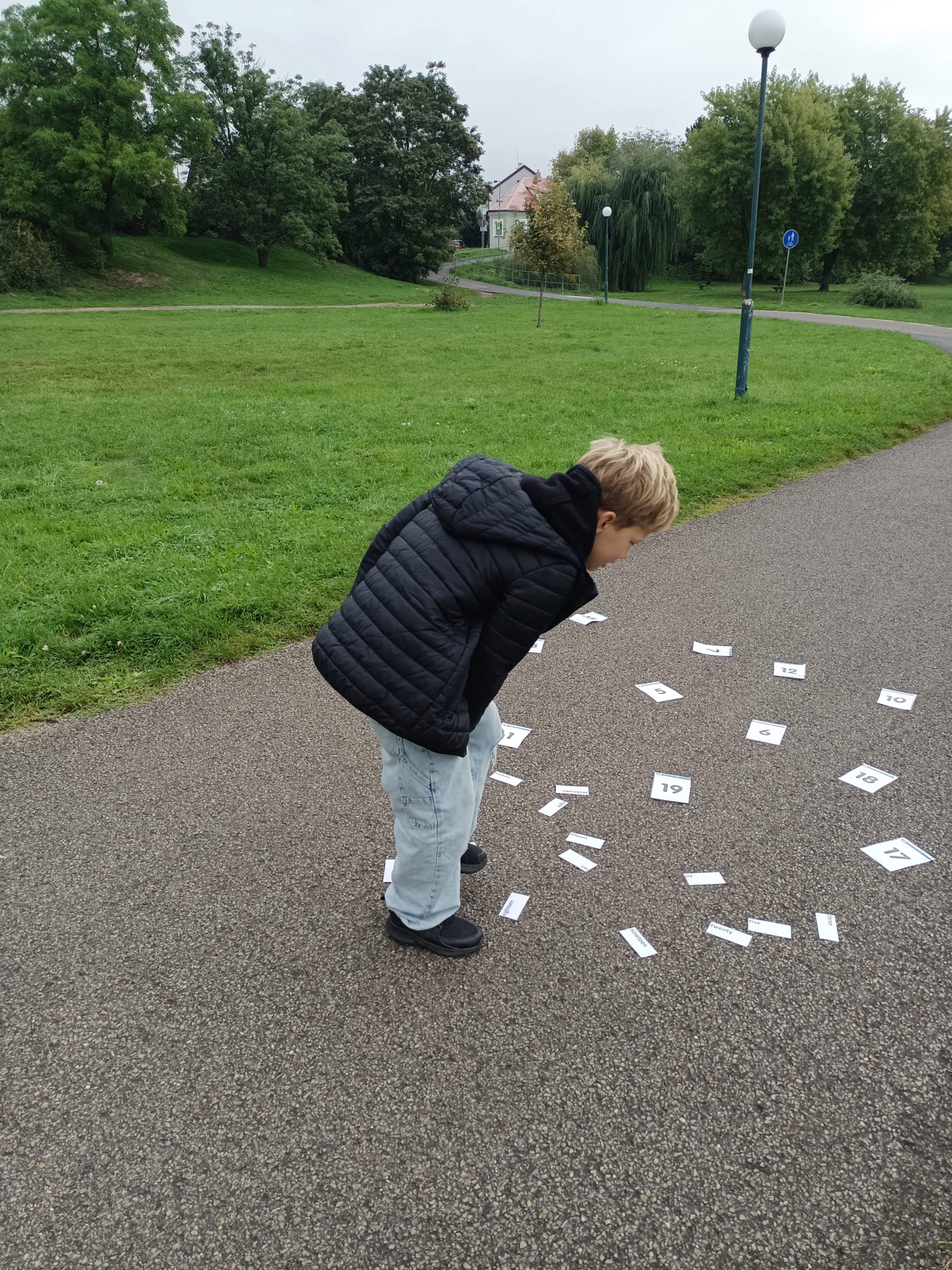 Většina dětí ve třetí třídě už zná pár anglických slovíček.Některé děti s jazykem teprve opravdu začínají. Dnes jsme se vrhli na opakování číslovek. Co na hodině bylo jiné? Všechno jsme procvičili venku v chůzi i v běhu. Vždyť angličtinu budeme potřebovat především někde na ulici, na dovolené či na hřišti. Proč to tedy nezkusit hned. Užili jsme si hodinu, přidali několik nových slov a na závěr, už ve třídě, jsme si s chutí zazpívali. Bylo to prostě příjemné.