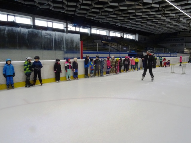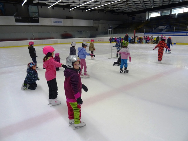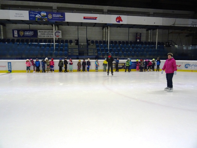 Po téměř roce se opět musíme rozbruslit a naší bruslařští instruktoři si nás rozdělují do tří skupin. Je nás pře šedesát. Pro starší děti je to o tom, než se rozjezdíme. Ale co naši malí prvňáčci. Vždyť ty určitě někteří stojí na ledě a na bruslích poprvé. Ale určitě se vše podá a po několika málo hodinách to bude o něčem jiném. Dnes to byl pouhý začátek a seznámení se s ledem a s tím, co kdo umí. Příště již určitě nastane pravý výcvik. Hodina utekla jako voda, a my se jdeme převléknout a budeme odcházet zpět do družiny. První dojmy v nás nechávají různé emoce, ale jinak je to super. Tak za 14 dnů opět na zimním stadionu.